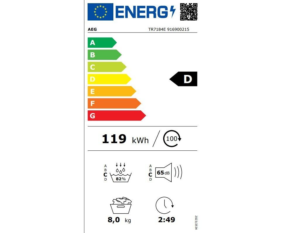 AEG TR7184E Στεγνωτήριο 8kg με Αντλία Θερμότητας