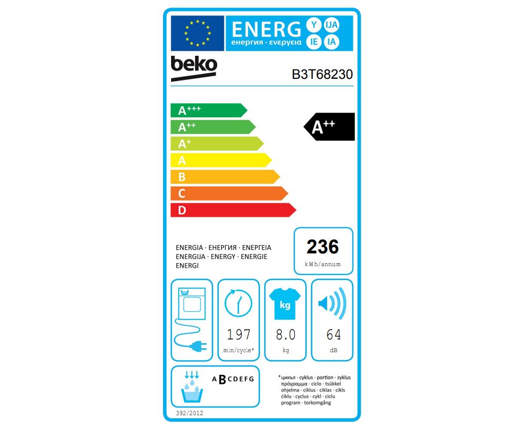 Beko B3T68230 Στεγνωτήριο 8kg A++ με Αντλία Θερμότητας