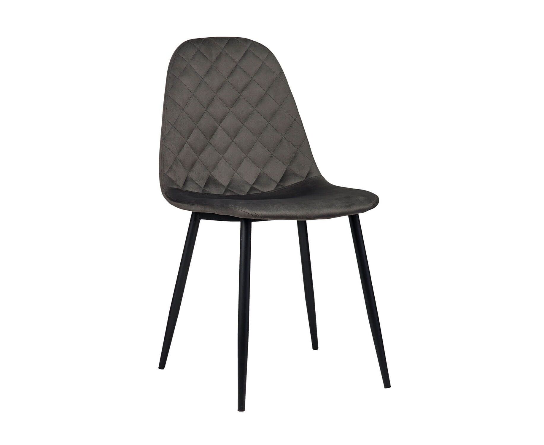 Η Αntonella είναι μια καρέκλα με εντυπωσιακό design που μπορεί να σταθεί αρμονικά σε οποιοδήποτε χώρο του σπιτιού σας. Η στήριξή της πραγματοποιείται σε τέσσερα ενισχυμένα πόδια μεγάλης ανθεκτικότητας ηλεκτροστατικής βαφής σε χρώμα Μαύρο ματ. Το κάθισμα είναι υψηλής ποιότητας και αντοχής και είναι επενδεδυμένο με Velvet ύφασμα σε χρώμα Γκρι. Επιπλέον το σχέδιο πυκνών ρόμβων που στολίζει τη πλάτη του καθίσματος ομορφαίνει το χώρο σας και δίνει ένα τελικό αποτέλεσμα υψηλής αισθητικής.