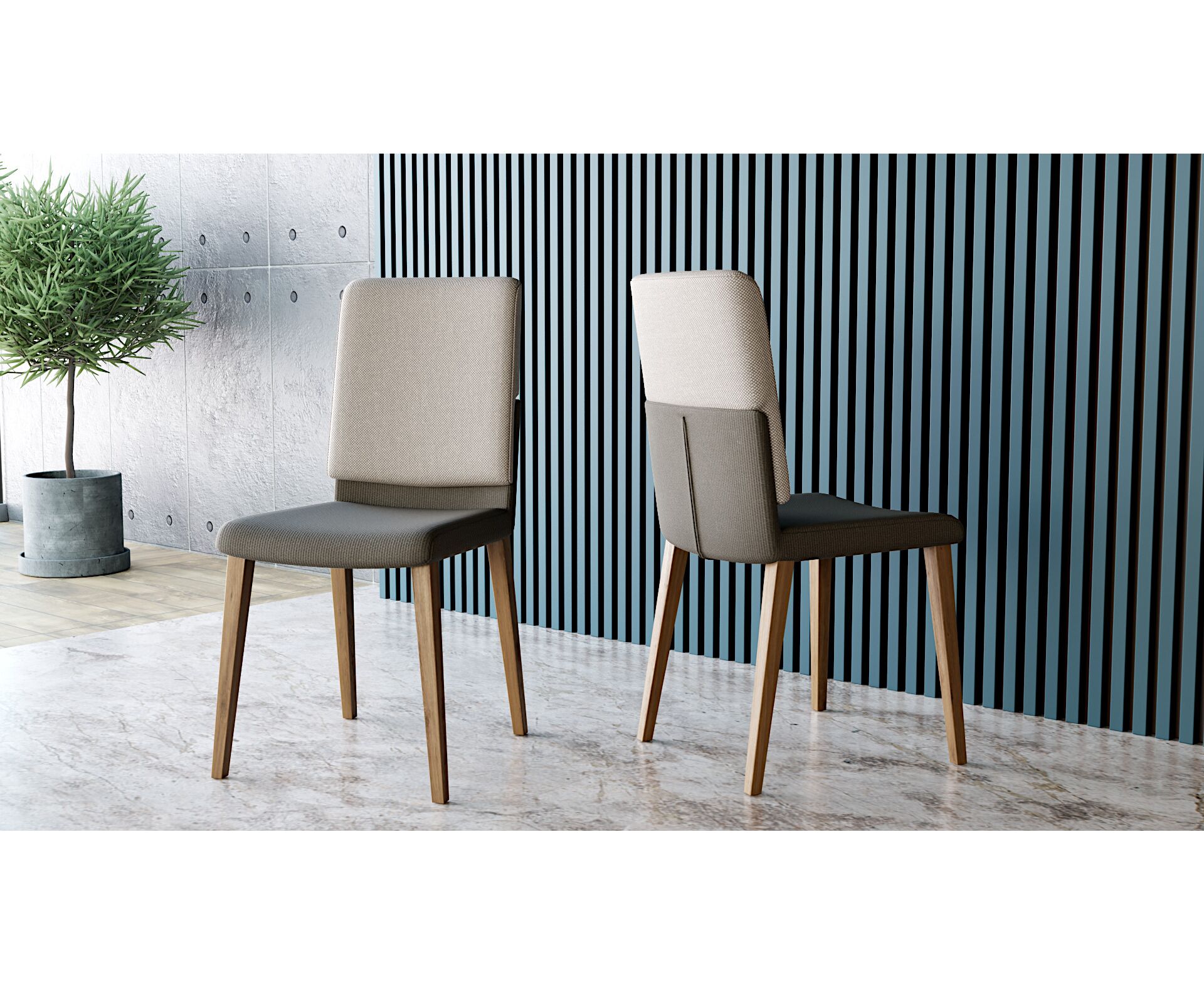 Καρέκλα με απλές γραμμές και άνετο κάθισμα με ιδιαίτερο design. Δείχνει πολύ εντυπωσιακή με δυο διαφορετικά χρώματα στο ύφασμα ή με το συνδυασμό δύο διαφορετικών υφασμάτων. Την κατασκευάζουμε σε ξύλο επιλογής σας και σε τύπο/χρώμα υφάσματος που ταιριάζει στο χώρο σας. Συνδυάζεται με πολλές τραπεζαρίες της συλλογής μας. Τη συλλογή μας σε καρέκλες μπορείτε να τη δείτε από κοντά