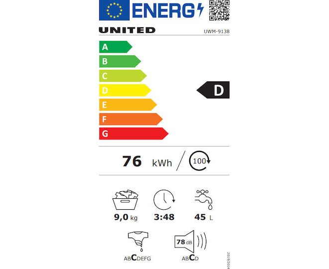 United UWM-9138 Πλυντήριο Ρούχων 9kg 1000 Στροφών